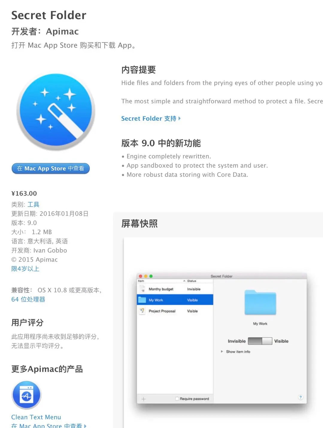 在Mac App Store定价为163元的Secret Folder