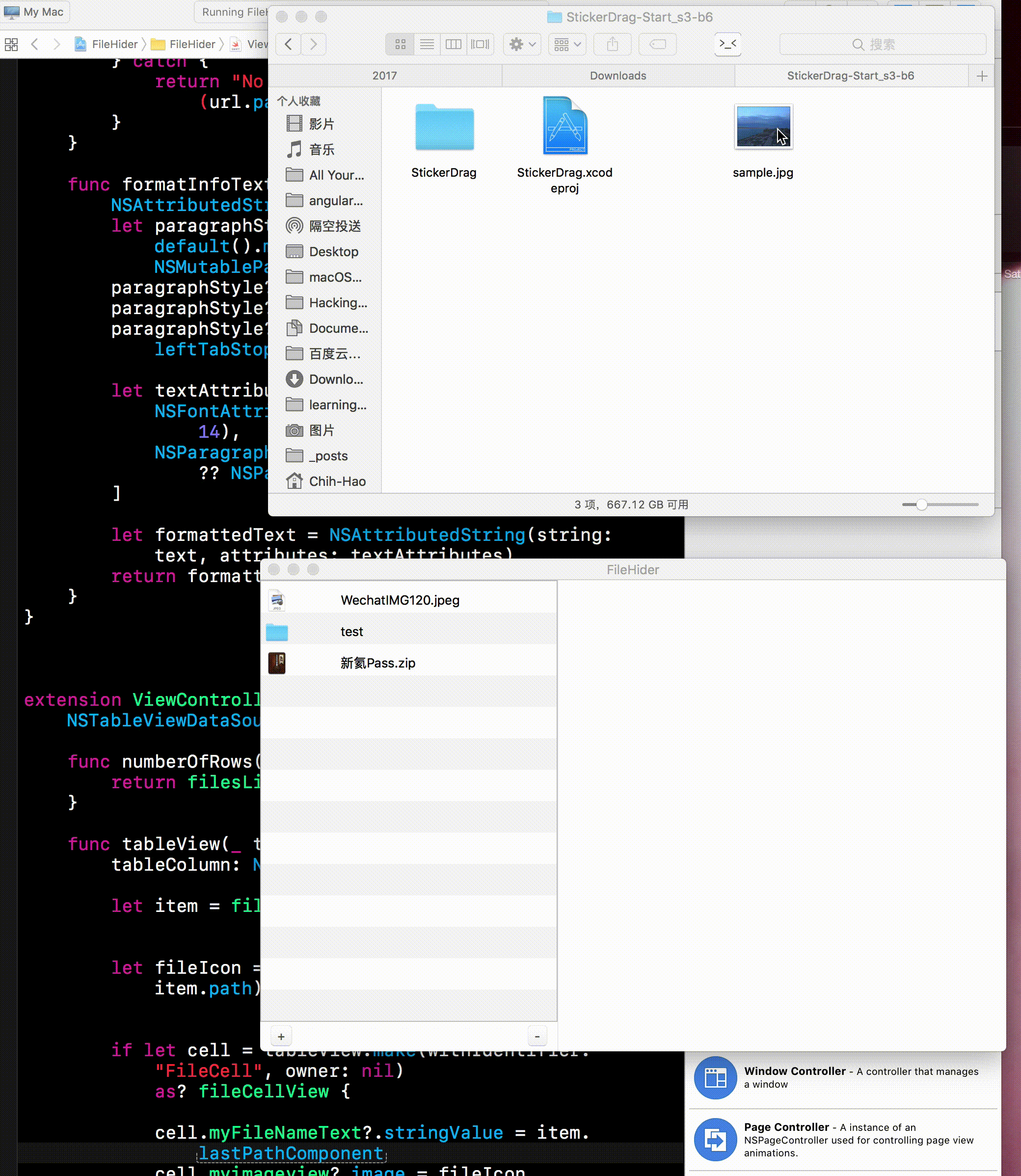 对于FileHider来说,我们需要指定TableView为Drag & drop事件的终点,并指定可接受的文件类型,并在drag结束后,获取文件的完整路径,添加到tableView的datasource对应的数组中。