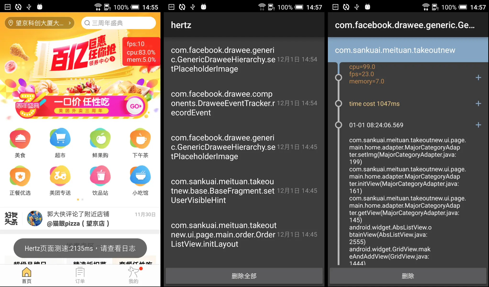 美团外卖在接入Hertz后,初步具备了发现、定位性能问题的能力,在开发期、测试期、线上期都对Hertz进行了实际验证。