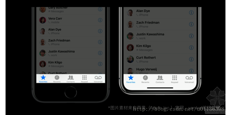 大部分使用系统提供的标准UI元素(如导航栏)的APP会自动适应iPhone X!Navigation bar、tab bar和tool bar会扩展到屏幕顶部和底部弧形区域。如果app使用自定义控件或非标准布局,要在iPhone X上运行良好需要一点修改。