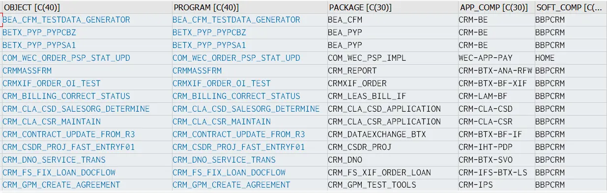 但我接到一个任务,在结果列表里还需要显示出使用了指定的function module的代码所属的Package, Application Component和Software Component。