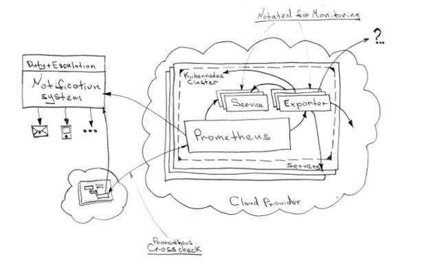 监控是必须安装在集群内的少数几个辅助系统之一,集群是一个受监控的实体。但是对于监控系统的监控(抱歉有些啰嗦)只能从外部进行(例如,从相同的“预发布”环境)。在这种情况下,交叉检查可作为一个针对任何分布式环境的便捷解决方案,这不会使高度统一的生态系统架构复杂化。