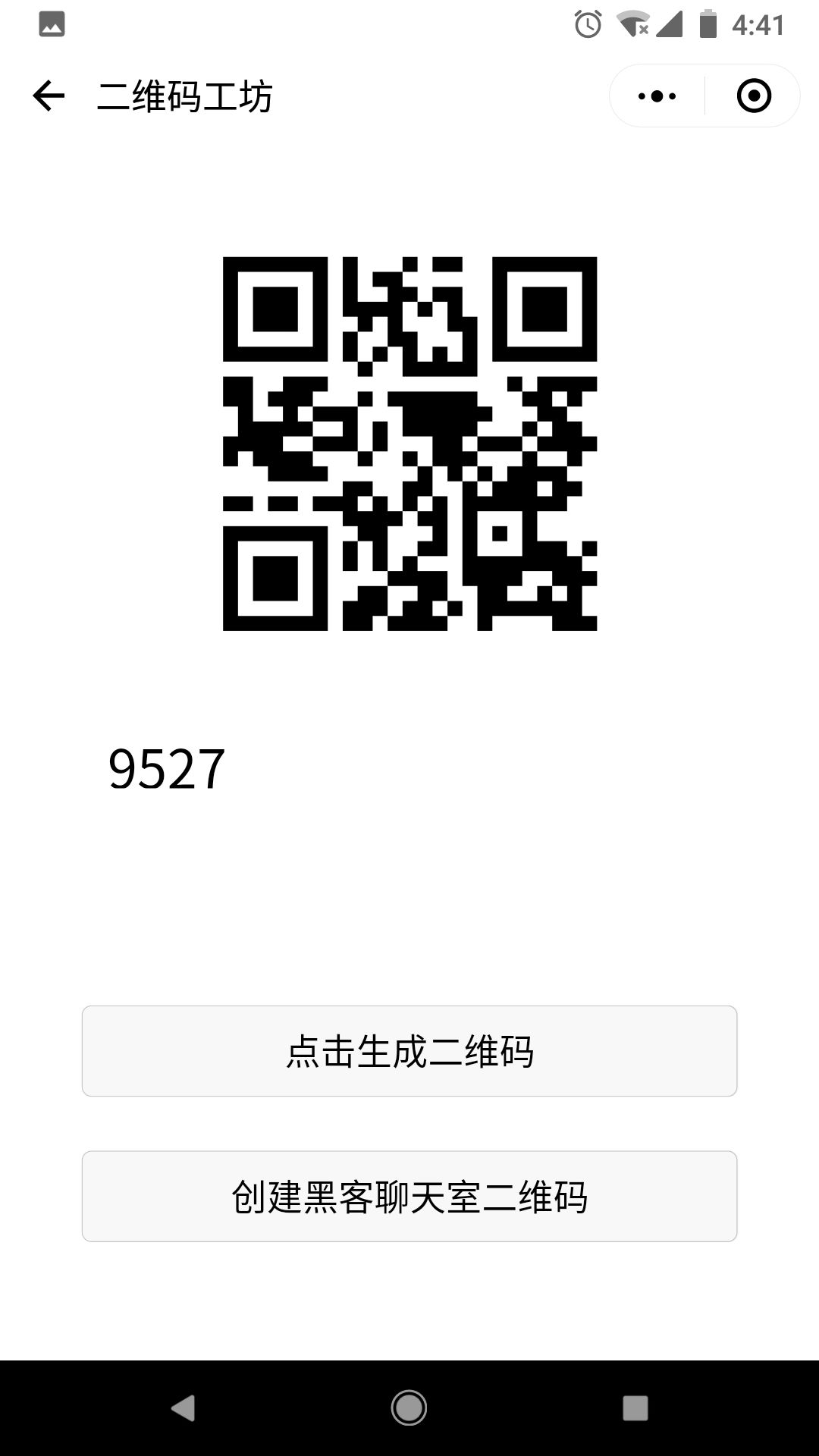 上面图的私聊密钥是9527。你在输入框输入9527点击创建黑客聊天室二维码,此时生成的二维码就是属于你的一个聊天室。你将二维码保存发送给他人,就可以愉快的和他人聊天啦!当然,你也可以将密钥9527告诉他,让他自己生成二维码(同你生成的一样)。