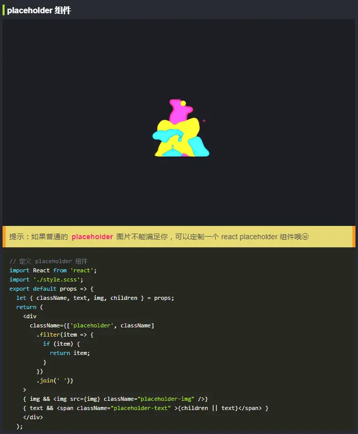 placeholder: 占位元素,除了支持普通的图片外,还支持 react 组件。
