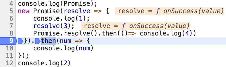 我们在第4行的resolve(3)那里打个断点进去看一下resolve是怎么执行的,层层进去,最后的函数是这个: