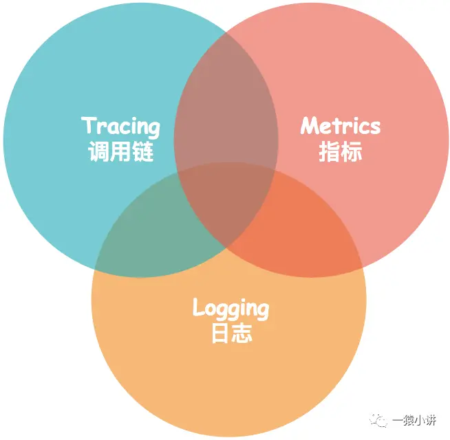 先帝创业未半而中道崩殂,今监控天下三分。如下图所示,监控的天下被划分为基于 Tracing(调用链)监控、基于Metrics(指标)监控、基于Logging(日志) 的监控。