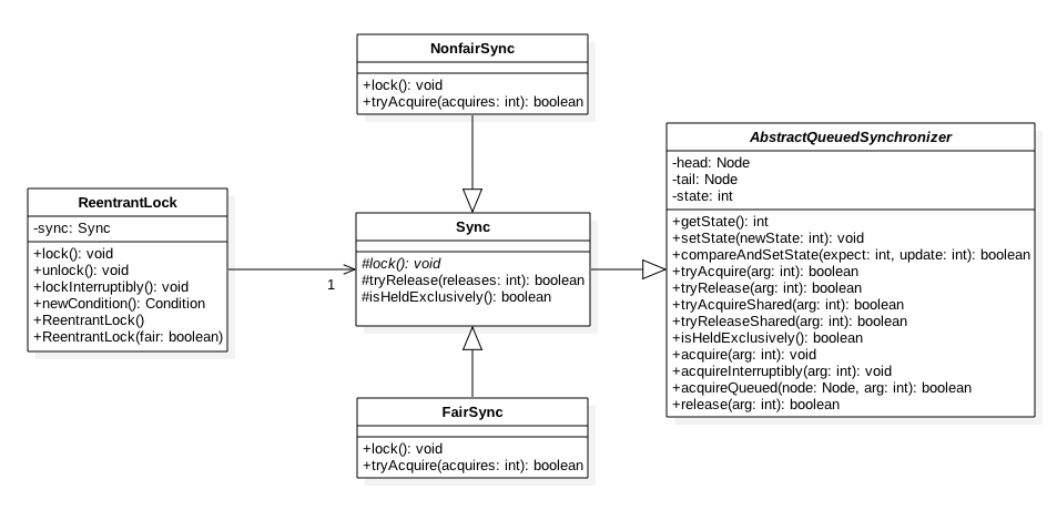 实际上内部锁是可重入锁,例如synchronized关键字管理的方法,可重入锁的原理是在锁内部维护了一个线程标示,标示该锁目前被那个线程占用,然后关联一个计数器,一开始计数器值为0,说明该锁没有被任何线程占用,当一个线程获取了该锁,计数器会变成1,其他线程在获取该锁时候发现锁的所有者不是自己所以被阻塞,但是当获取该锁的线程再次获取锁时候发现锁拥有者是自己会把计数器值+1, 当释放锁后计数器会-1,当计数器为0时候,锁里面的线程标示重置为null,这时候阻塞的线程会获取被唤醒来获取该锁。