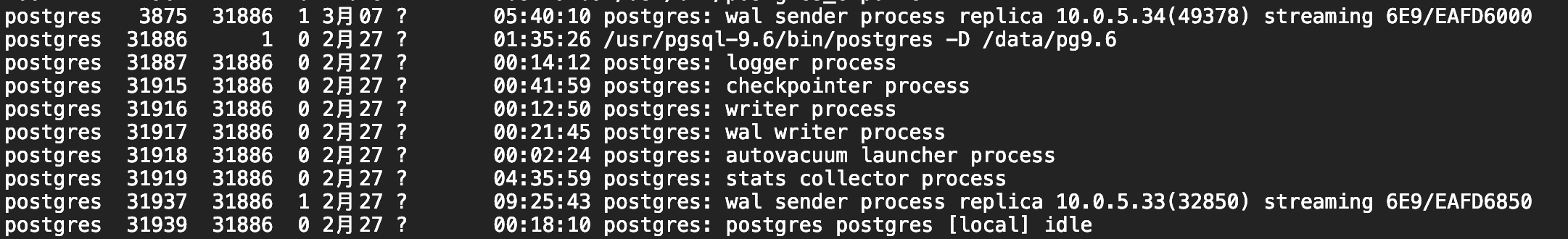 | statistics collector | 收集统计信息,像pg_stat_activity或pg_stat_database里存放的数据 |