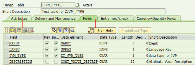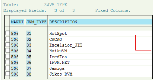 In fact the requirement to create an extension field with type Code List is still feasible. The entries in code list in this approach are fed by check table so we have to create a check table first. I have the following check table: