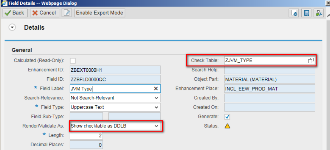Once the check table is ready, you can check extension field and assign this table to it. The attribute "Render/Validate As" must be set as "Show checktable as DDLB":