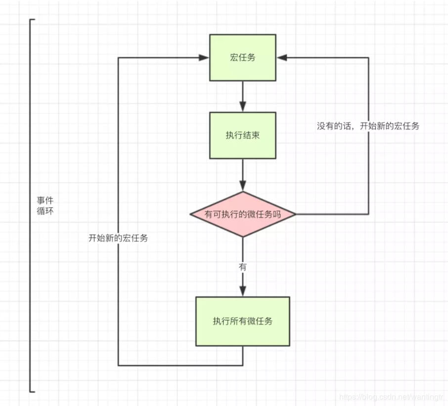 事件循环的顺序,决定js代码的执行顺序。进入整体代码(宏任务)后,开始第一次循环。接着执行所有的微任务。然后再次从宏任务开始,找到其中一个任务队列执行完毕,再执行所有的微任务