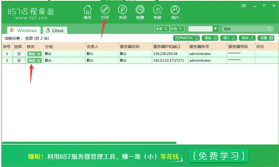 2.IIS7远程桌面 是专业vps管理服务器管理的工具,功能多样化,并且不断的改善,可批量管理WIN系列服务器,VPS,电脑。批量导入服务器的IP,端口,账号和密码。批量打开N个服务器的远程桌面 。