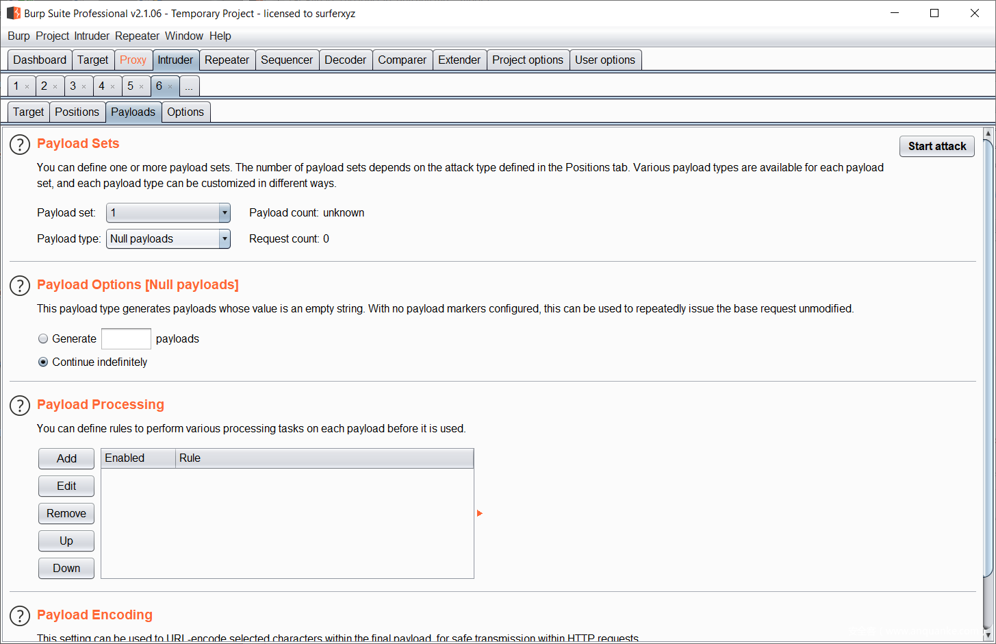 请求载荷设置Null payloads