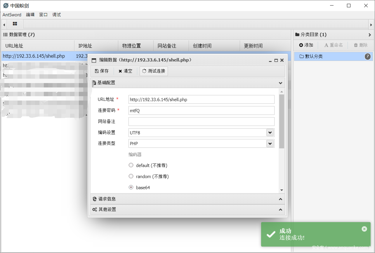 之后可以利用后门webshell进行连接Getshell