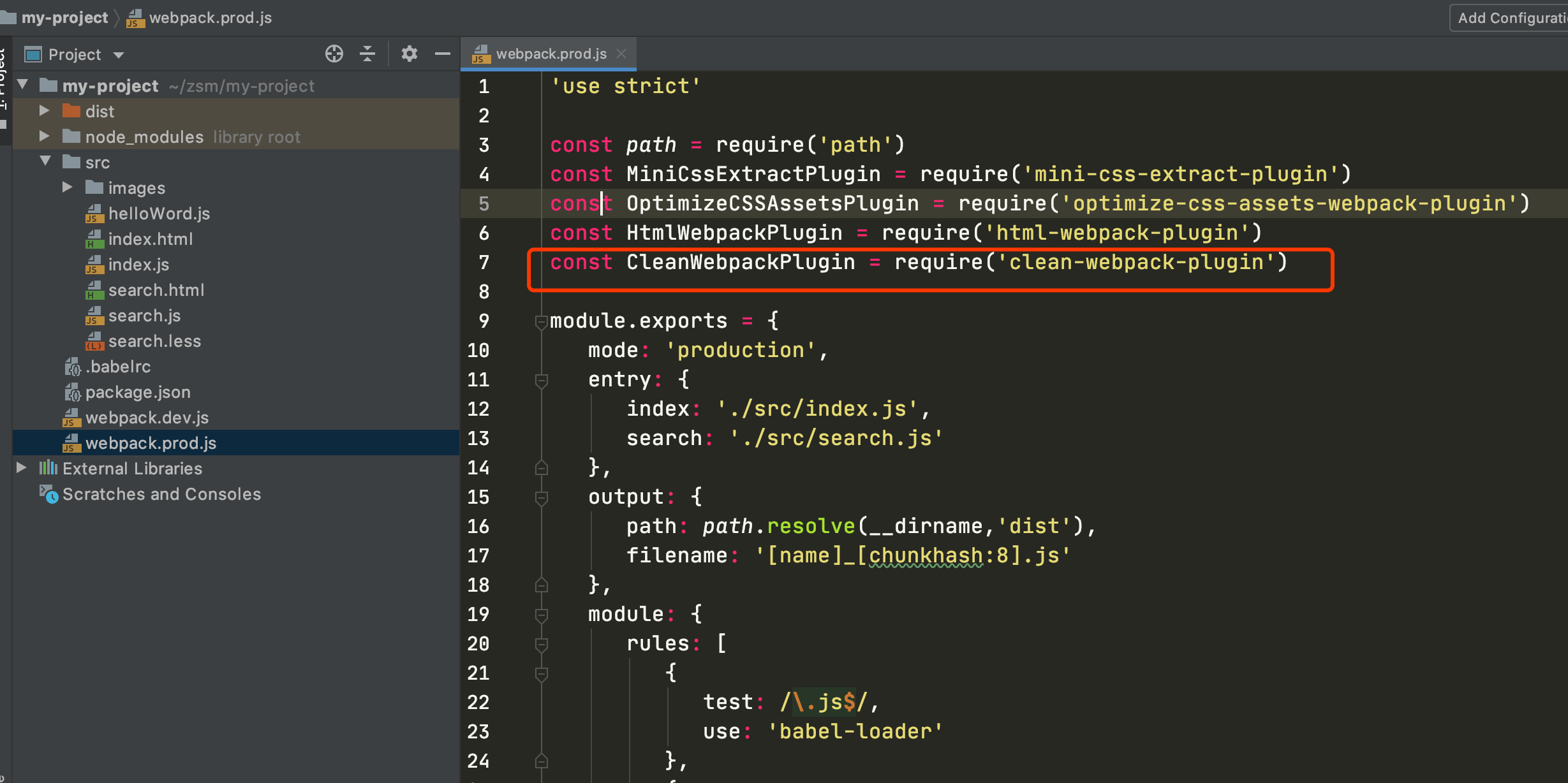 我们其实可以借助webpack插件的功能,在webpack里面刚好提供了一个比较好的插件,叫做clean-webpack-plugin。可以通过这个插件达到避免每次构建前需要手动的删除这个dist。