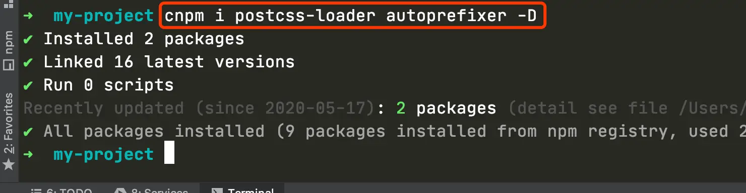 首先我们安装一下postcss-loader 和autoprefixer插件。