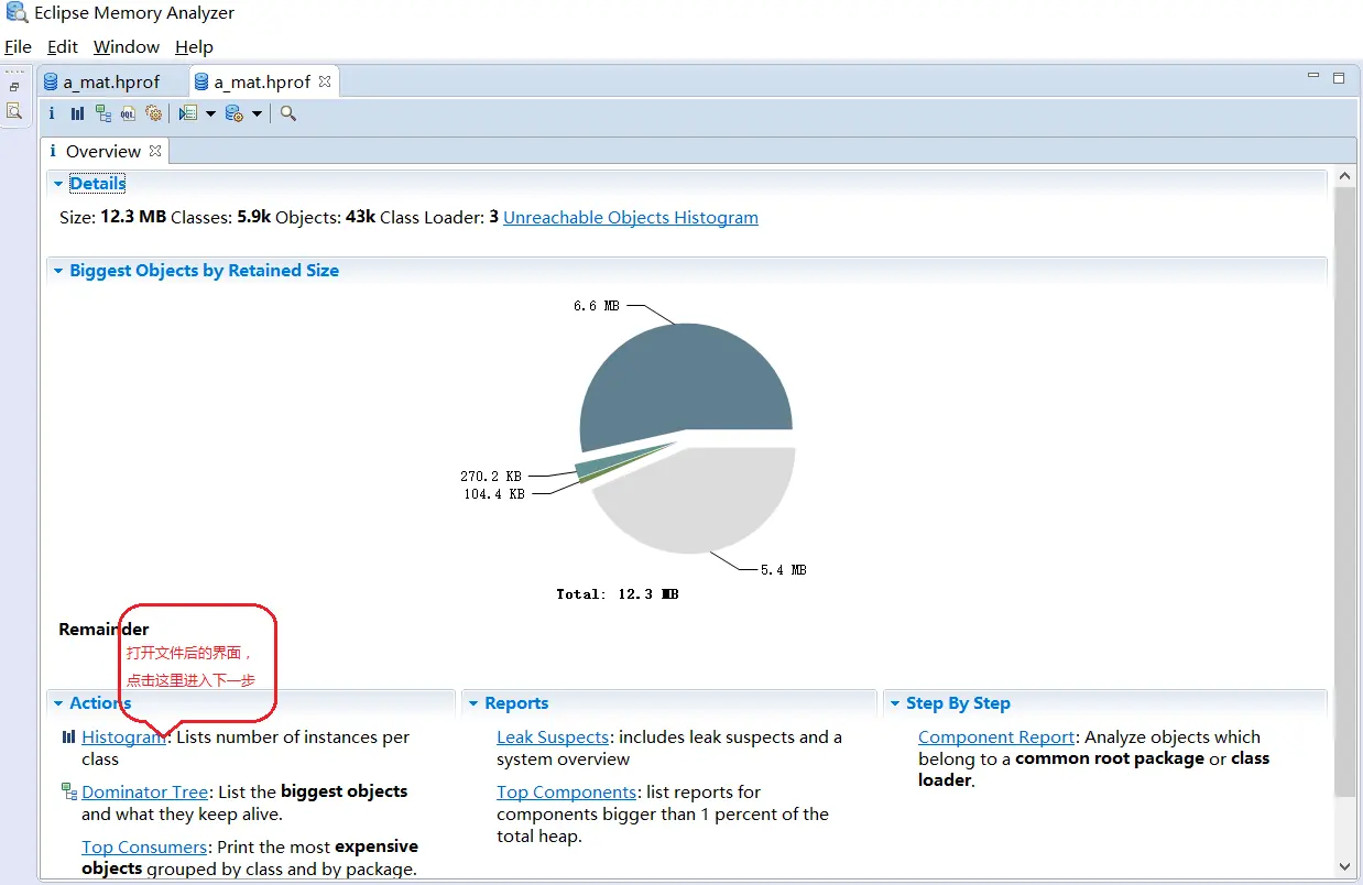 步骤7:使用Eclipse插件打开a_mat.hprof 下载链接:https://www.eclipse.org/mat/downloads.php