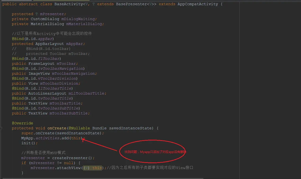 步骤11:在AS中AddfriendActivity中查看关于BaseApp的引用