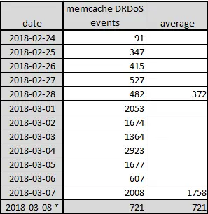 我们在之前的 文章 中已经提及,Memcache DRDoS 自从被360 0kee team首次公开批露以来,在过去的9个月中在网络上都不活跃。但是最近十天以来,Memcache DRDoS 在现网中的攻击越来越频繁,所制造的攻击流量也在不断刷新,当前最新的公开记录已经到了 1.7Tbps 。
