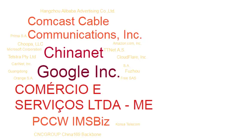 这些排名最靠前的20个ASN也仅能覆盖大约 53% 的活跃反射点,还有大约29k(47%)的反射点分布在其他 2.8k 个ASN中,如下表所示: