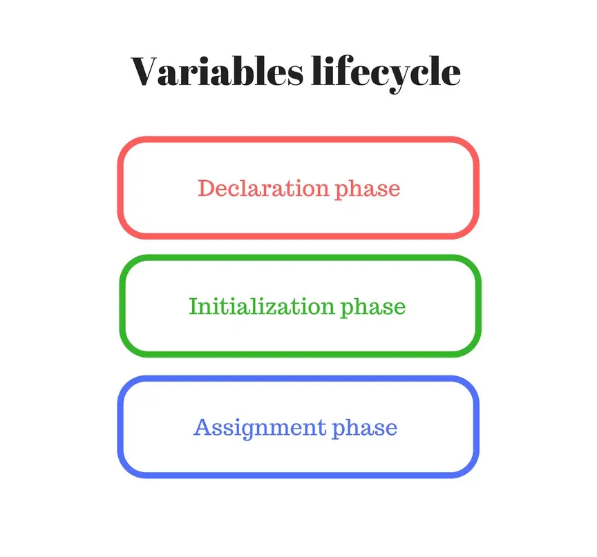 在赋值阶段,variable = 'value',变量会得到它的初始值(第二步)。