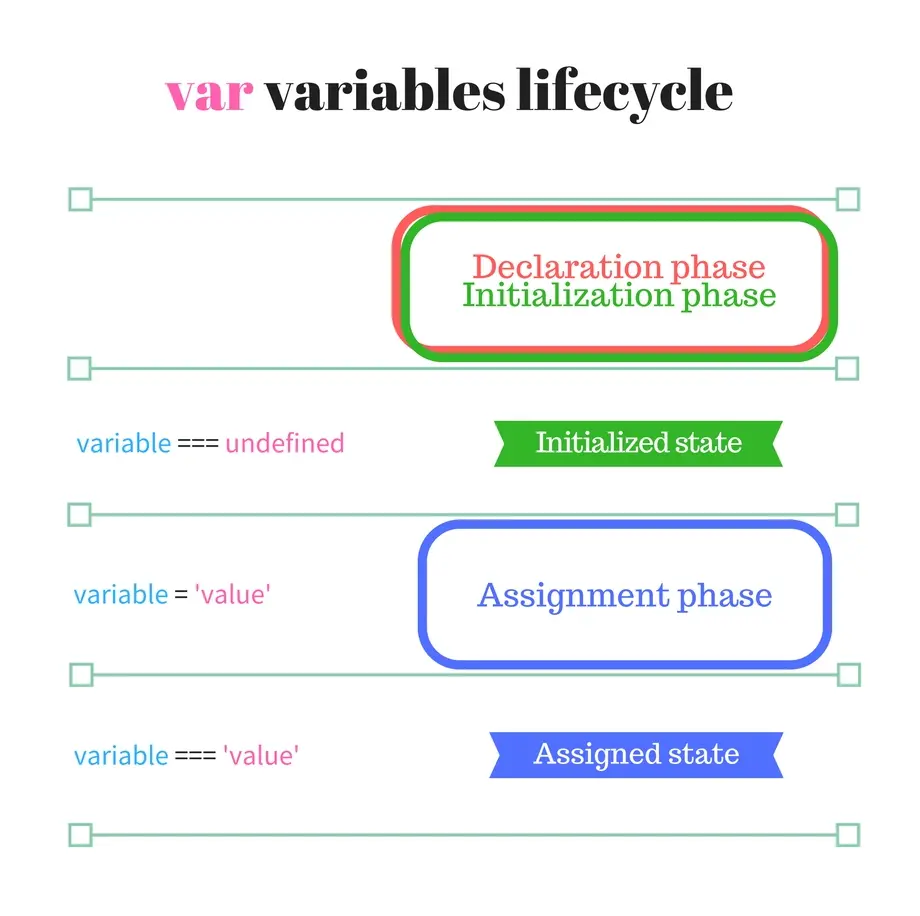 熟悉了生命周期阶段,我们用它们来描述引擎是怎样处理var变量的。