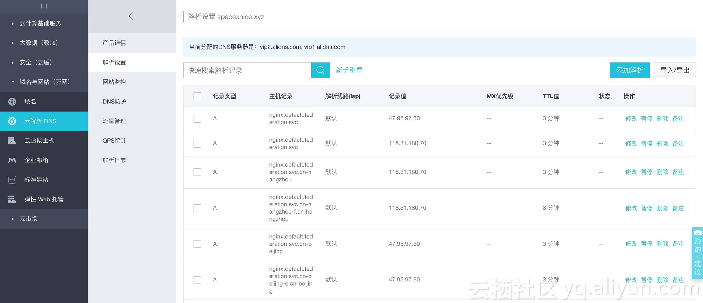 查看云解析dns的record记录