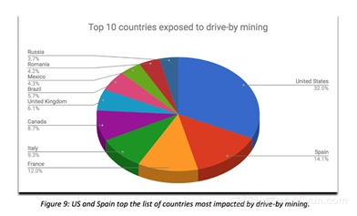有关机构曾经统计受黑客挖币影响最严重的前十个国家: