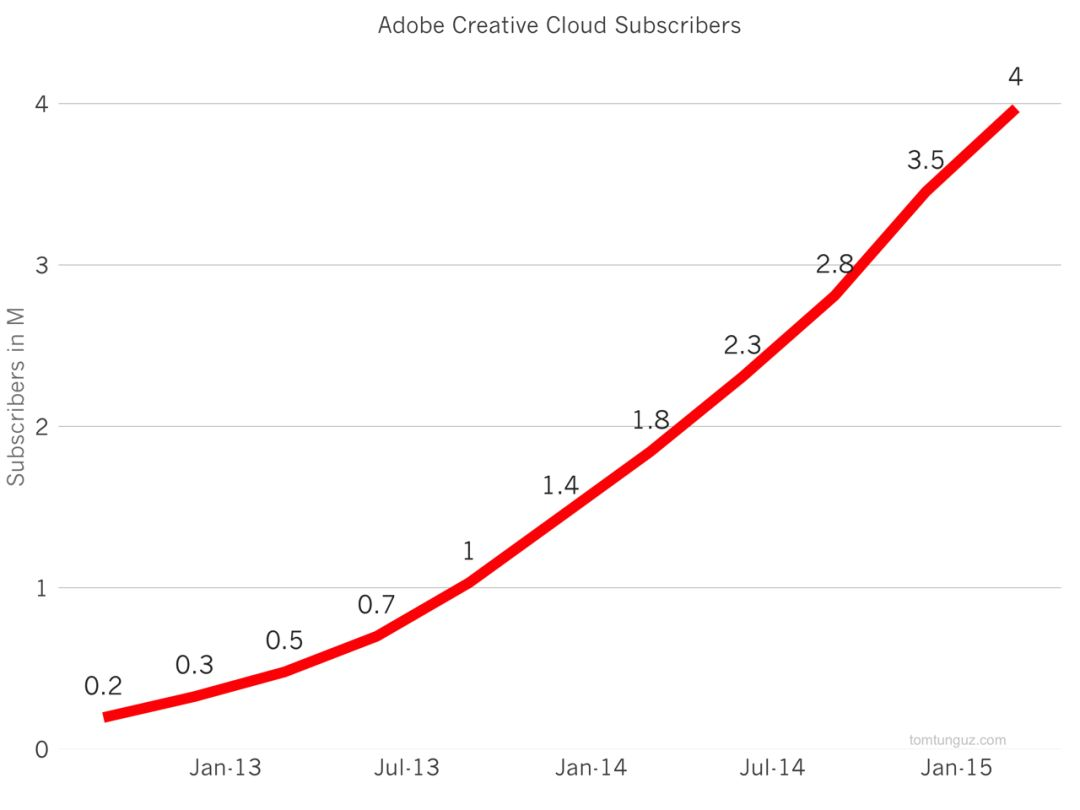 通过提高价格实现的收入增长从长远来看不可持续, Adobe 的 SaaS 转型,势在必行。