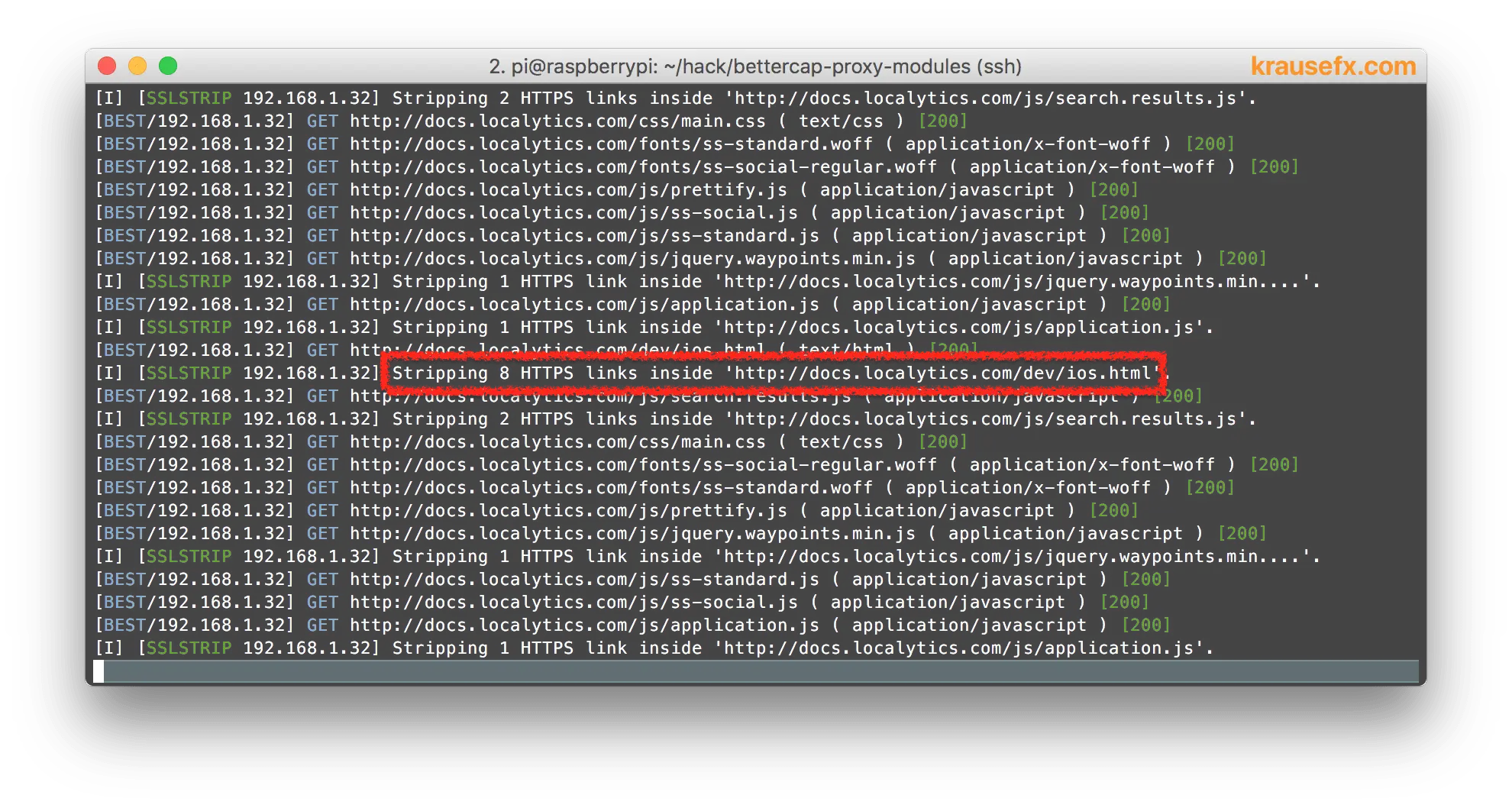 为了验证这点,我设置了我的树莓派 来劫持流量并实现多种 SSL 欺骗(将 HTTPs 链接降级为 HTTP),从 JavaScript 文件,图片文件,到下载链接。