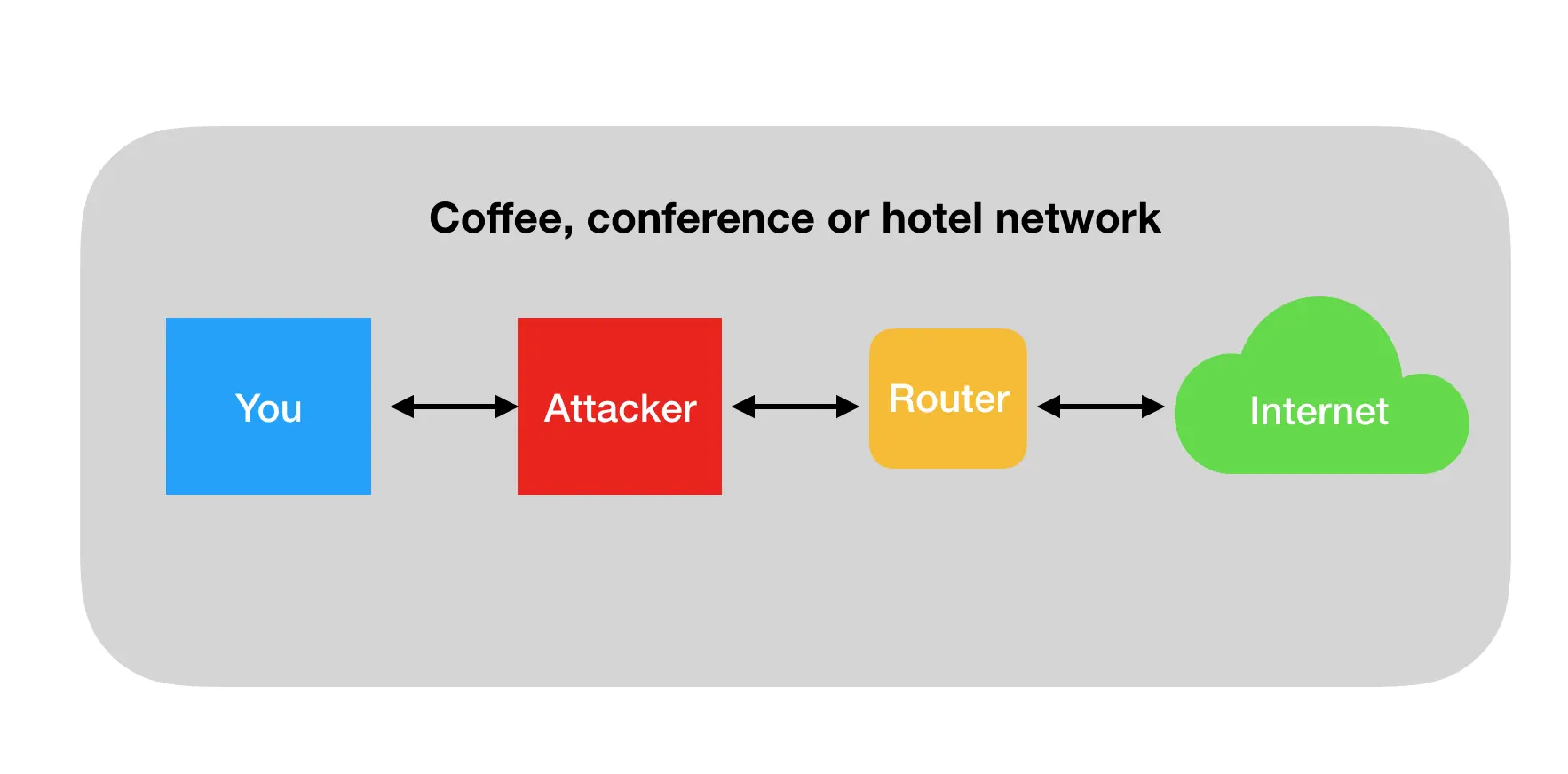 只要网络包经过攻击者的机器,就会有一些风险。与你使用你信任的 ISP 或 VPN 服务的风险一样:如果你使用的服务进行了合适的加密,他们就不能得知你正在做的事情或在你的客户端(比如浏览器)注意不到的情况下修改你的网络包。如之前所说,仍然有一些信息如特定的元信息是可见的(例如主机名)。