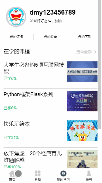 - 2、用户所学课程展示
