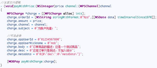 头文件 : #import <MOBPaySDK/MOBPay.h>