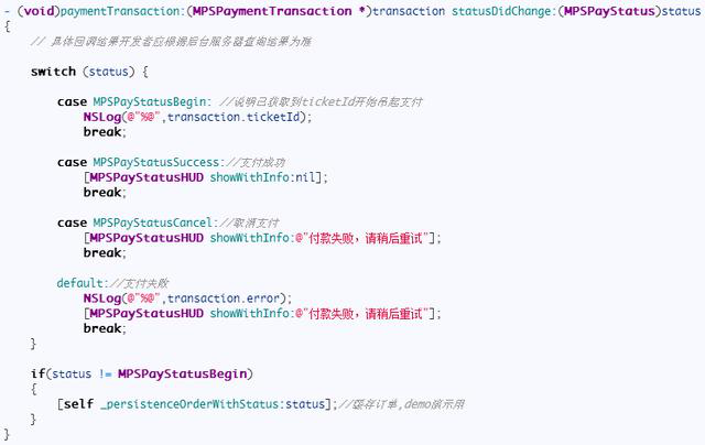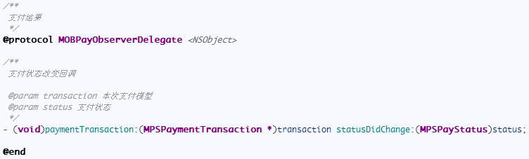 通过 MOBPayObserverDelegate 协议返回支付结果