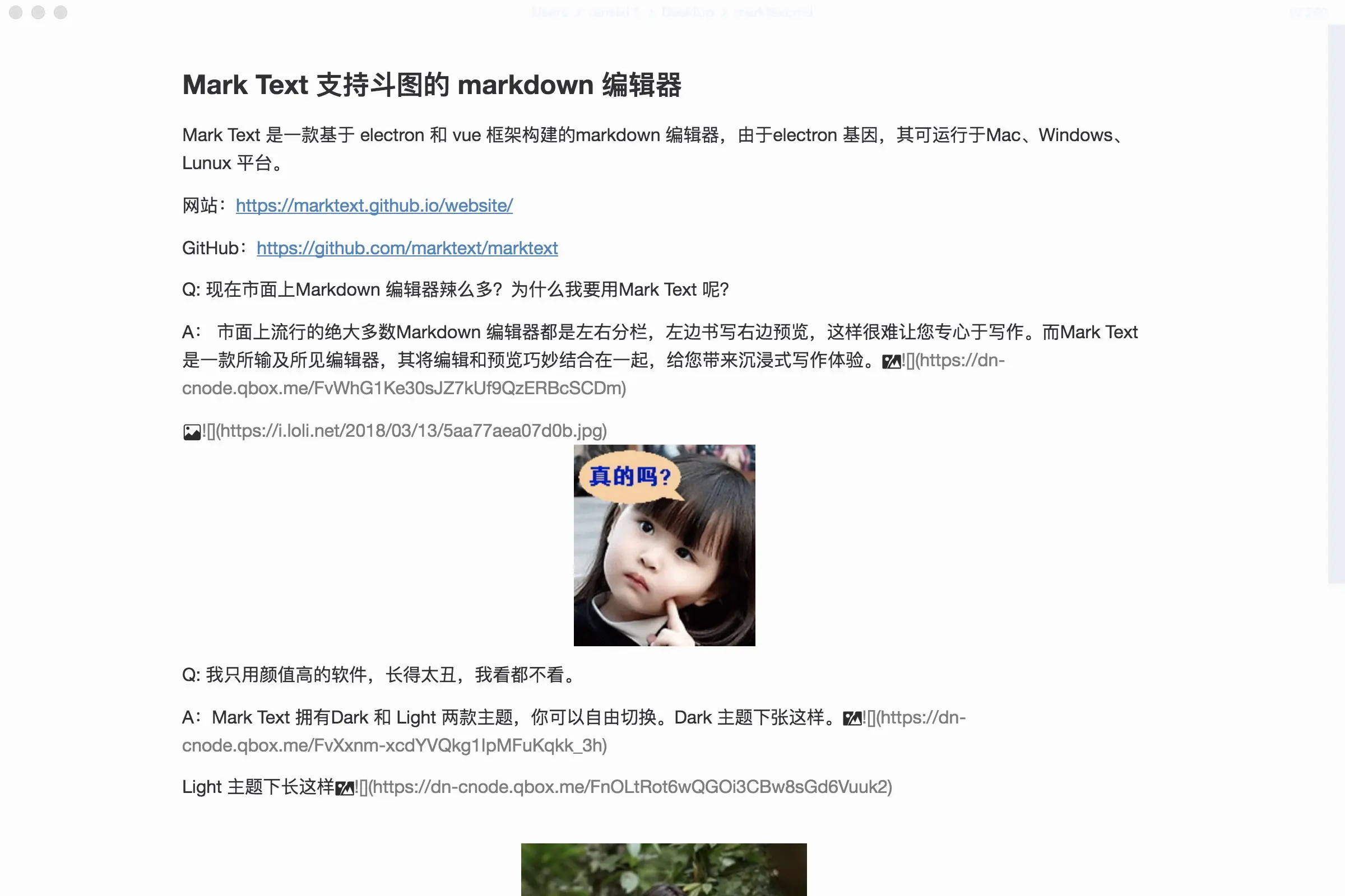 Q: 现在市面上Markdown 编辑器辣么多?为什么我要用Mark Text 呢?
