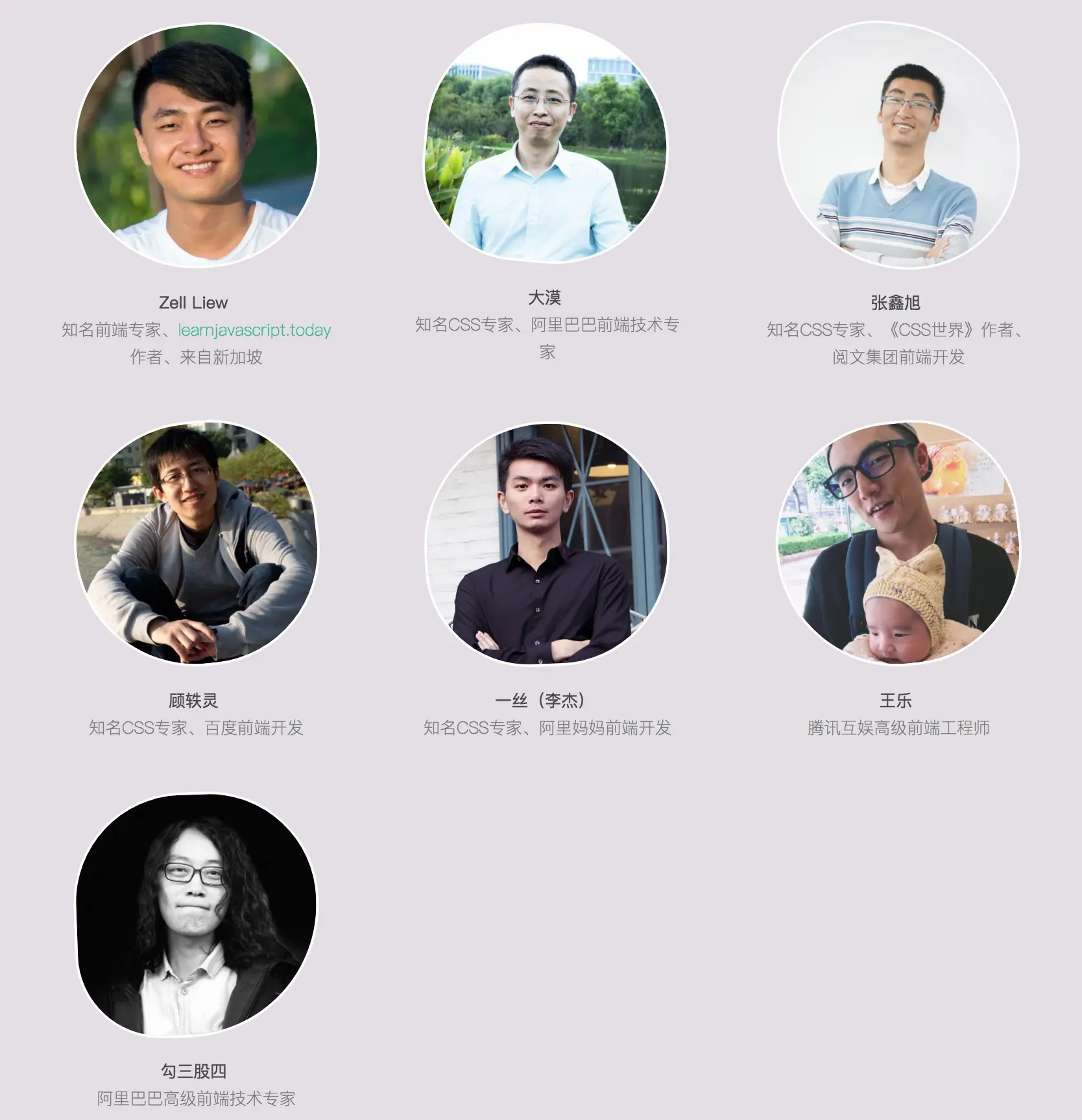 大会目前已经确认七位演讲嘉宾,他们来自行业内非常知名的CSS专家,他们分别是: