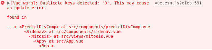 使用v-for :key 如果key的内容一样 也会有警告 如下:
