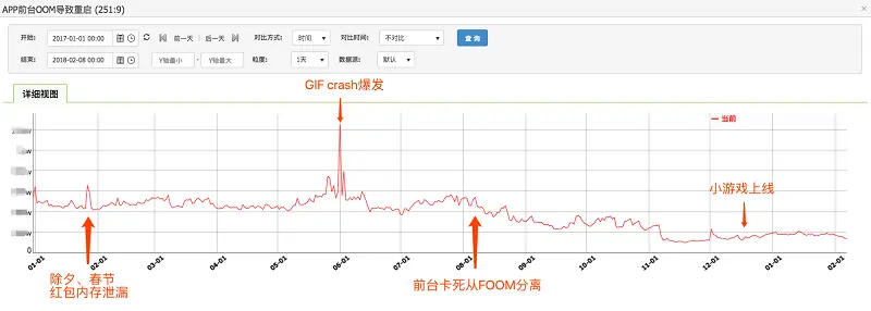 微信自15年年底上线FOOM上报,从最初数据来看,每天FOOM次数与登录用户数比例接近3%,同期crash率1%不到。而16年年初某东老大反馈微信频繁闪退,在艰难拉取2G多日志后,才发现kv上报频繁打log引起FOOM。接着16年8月不少外部用户反馈微信启动不久后闪退,分析大量日志还是不能找到FOOM原因。微信急需一个有效的内存监控工具来发现问题。