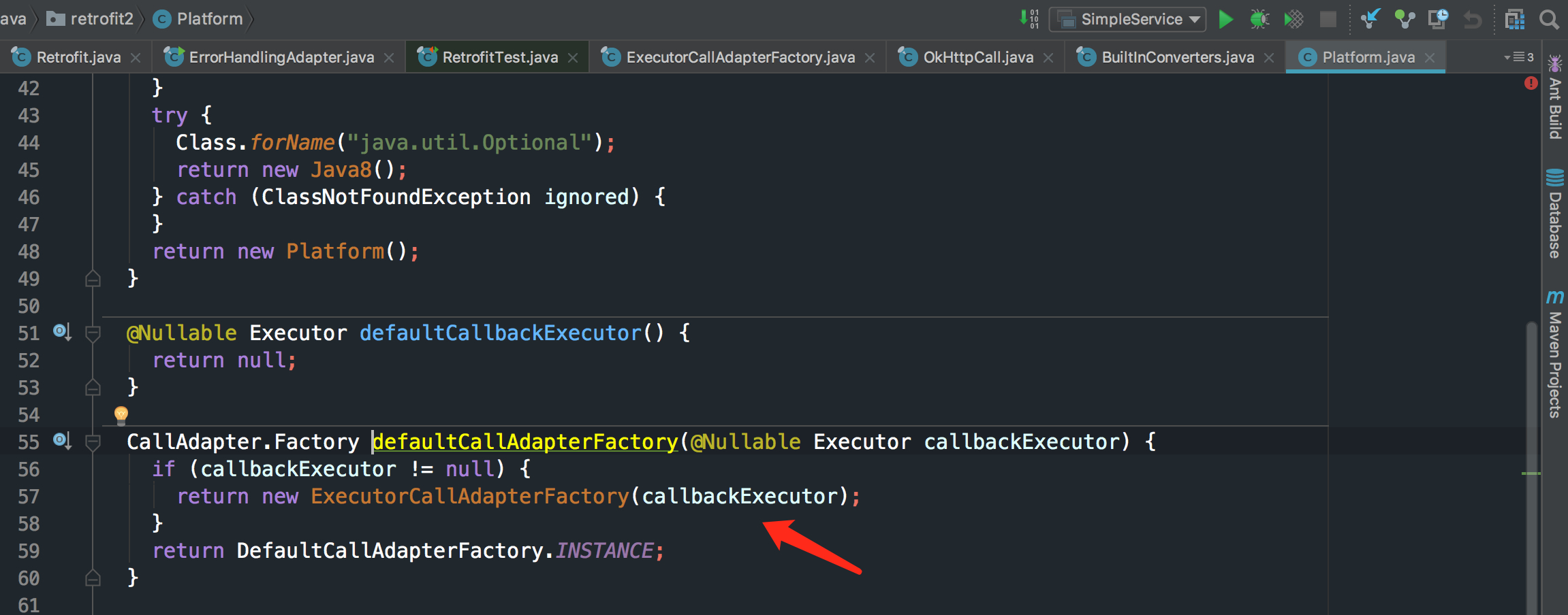 @Override CallAdapter.Factory defaultCallAdapterFactory(@Nullable Executor callbackExecutor) {