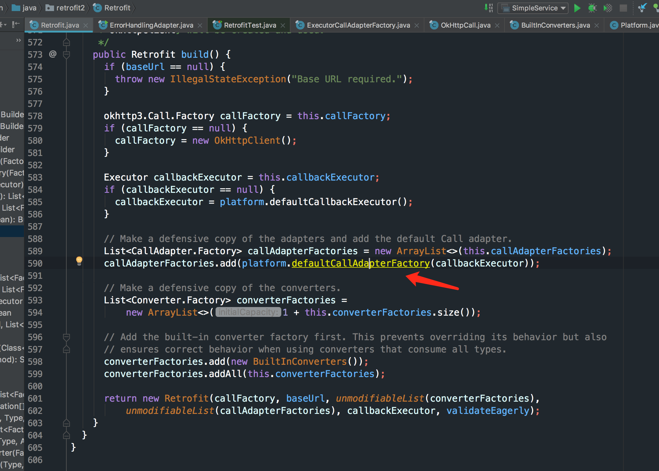 okhttp3.Call call = serviceMethod.callFactory.newCall(request);