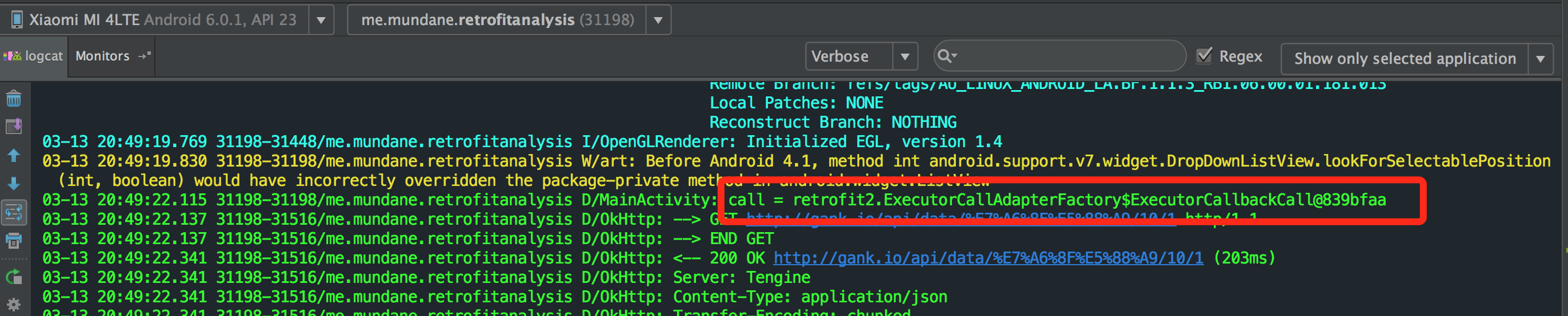 Call中的泛型由ConverterFactory决定,默认的ConverterFactory只能返回ResponseBody类型, 而加了GsonConverterFactory之后就能返回POJO类型, 也就是MeizhiModel类型.
