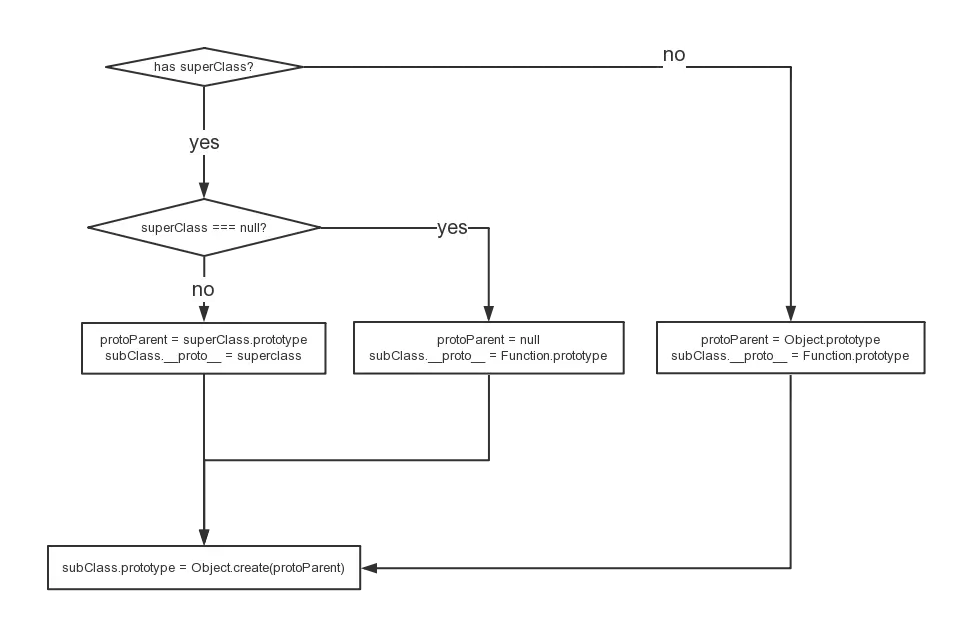 接下来就是我们喜闻乐见的处理原型链环节。与ES5中的区别仅仅在于父类为null时的处理。