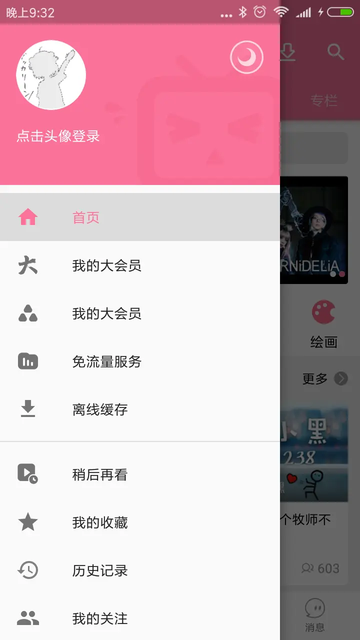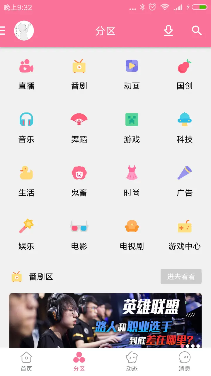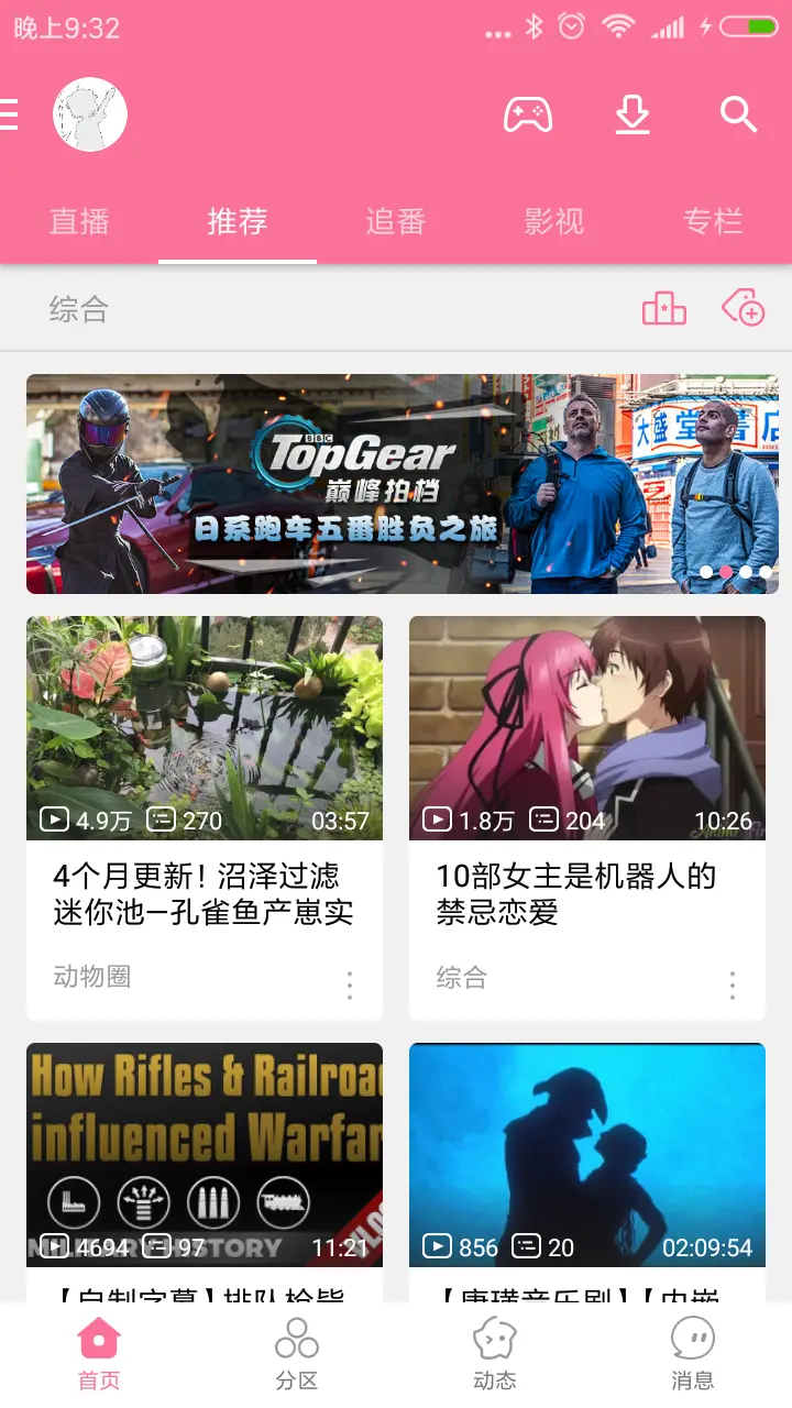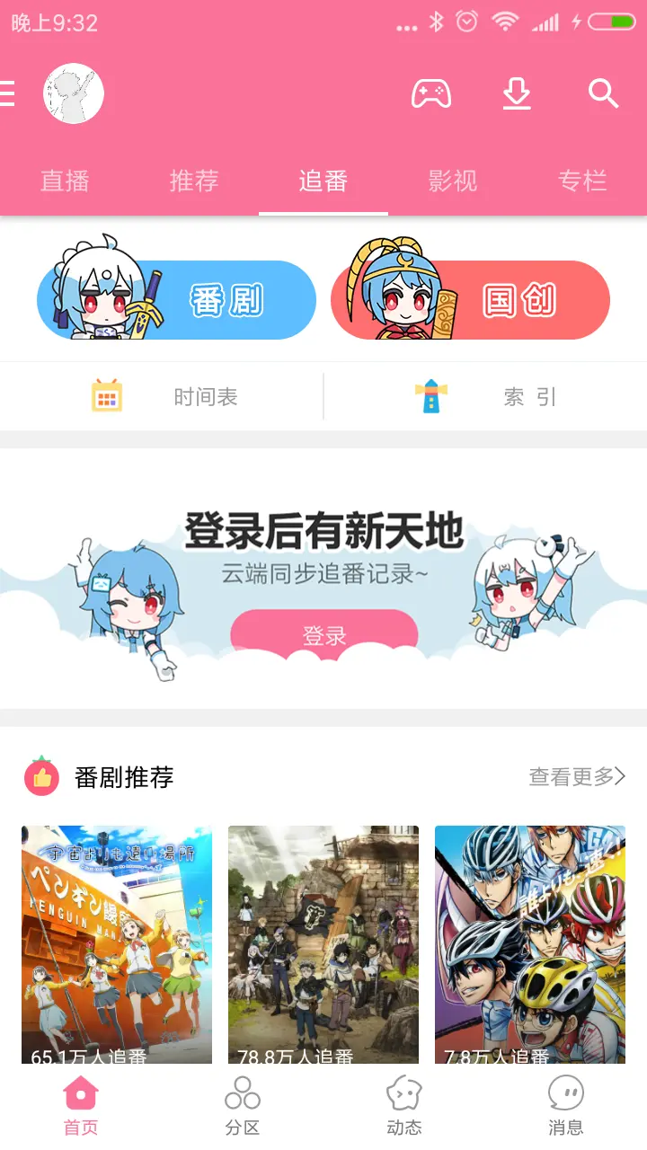 | 直播 | 推荐 | 追番 | 分区 | 侧滑 |