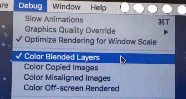 这点有点老生常谈了。iOS 的 UI 元素如果背景色是透明的,那么很可能会需要进行 alpha 混合。在 iOS 模拟器中打开对应的选项就可以进行查看哪些 UI 元素触发了 alpha 混合: