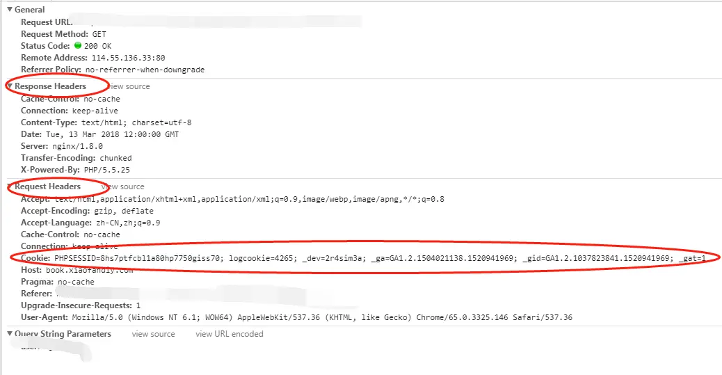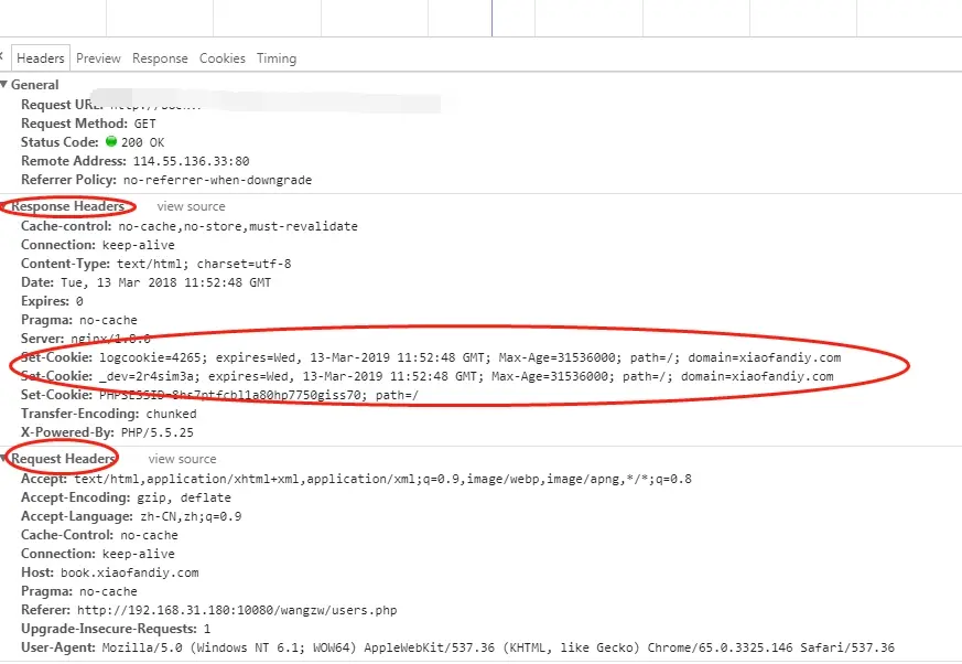 第一可以很明显的可出首部字段内没有Cookie的相关信息,其次也能看到set-Cookie里的信息,这就是服务器端生撑的Cookei信息。