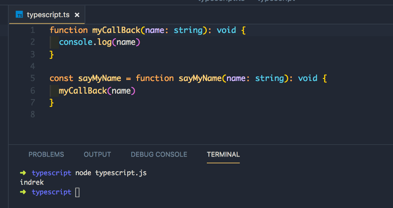 看一下我们是怎么声明参数和返回值类型的 — 它们的类型都是 string。