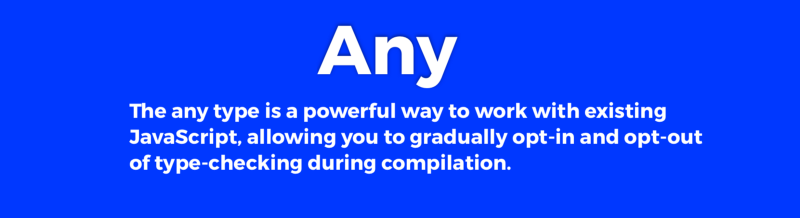 让我们声明一个数组,你把从某个 API 获取到的数据存储到这个数组中。数组中的数据是随机的。它不会只包括 string、number,也不像元组那样有组织好的结构。any 类型就可以解决这个问题。