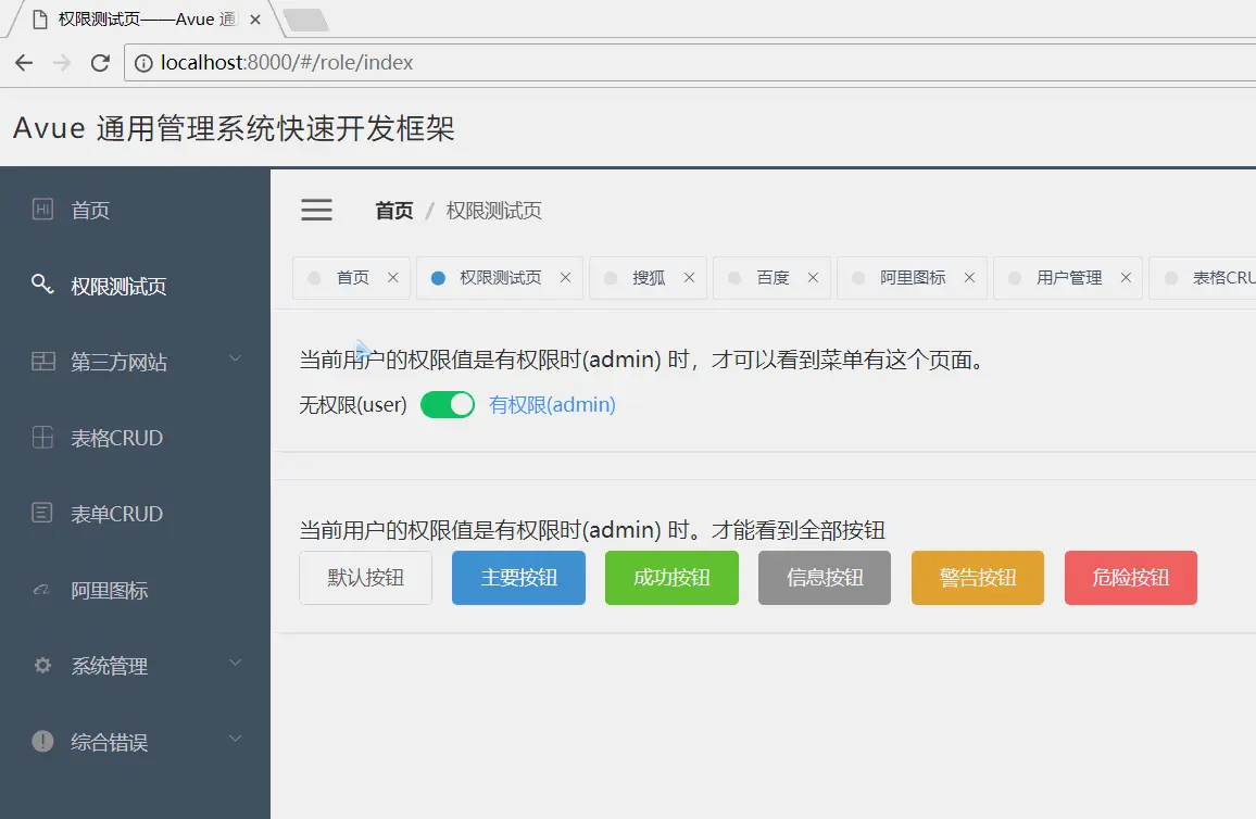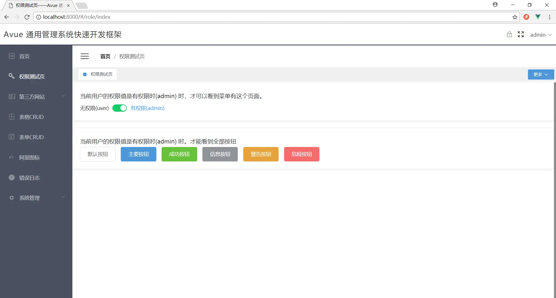 权限测试页面