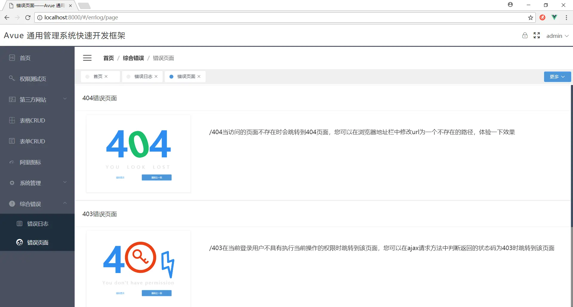 错误页面